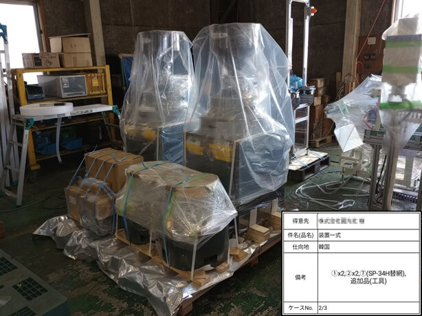そば粉製造ライン 貨物引取~輸送~輸出梱包(スキッド梱包)