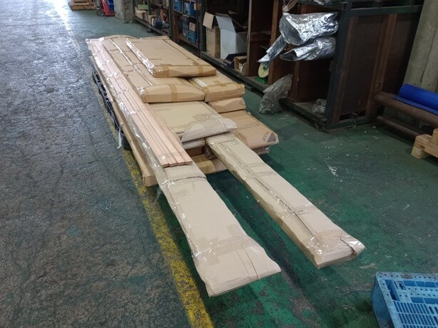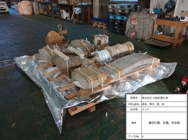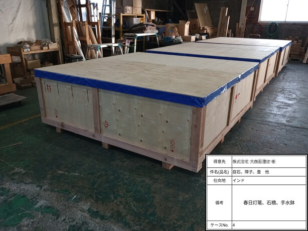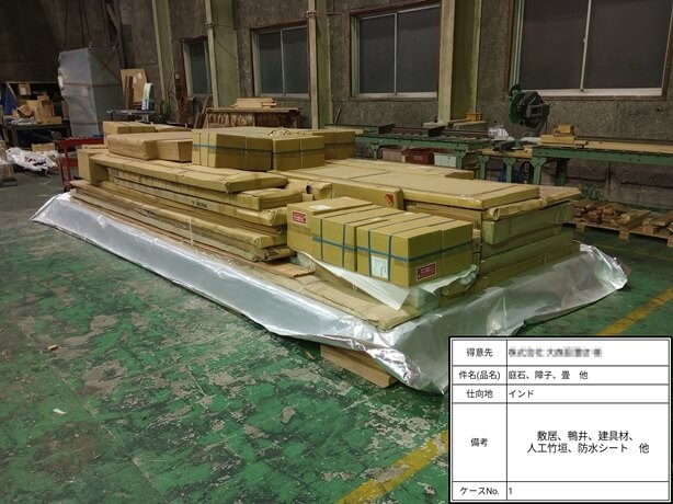 石材・畳・障子 弊社工場車上受け~輸送~輸出梱包(密閉合板)