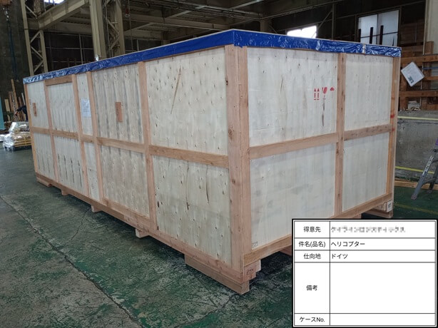 ヘリコプター 客先土台搬入~輸送~輸出梱包~名古屋港(密閉合板箱)